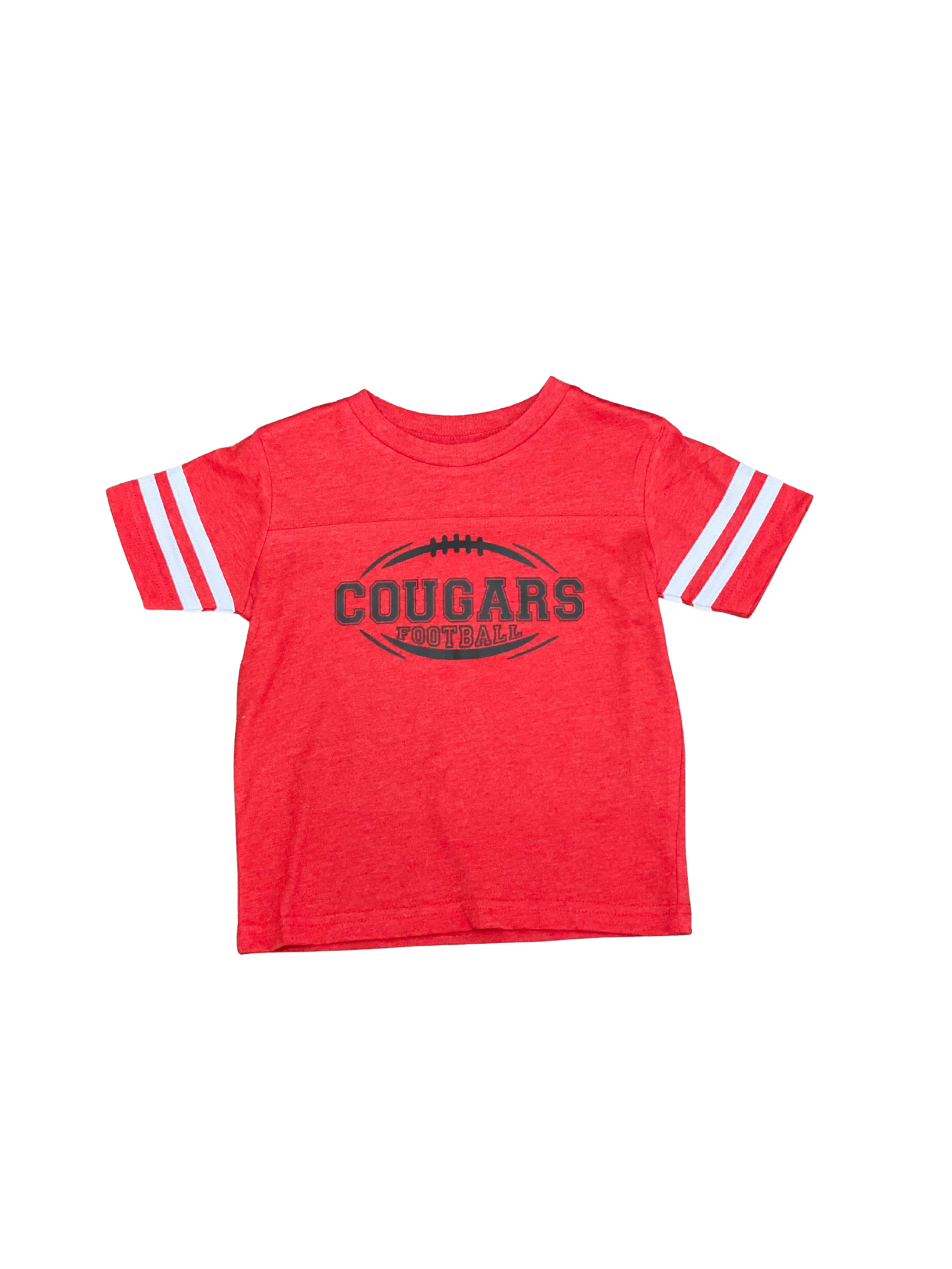 This red varsity tee will definitely make a statement! Pair it with a black bow or black shorts, either way your little cougar will shine bright under those Friday Night Lights! Handmade in Beeville, TX.