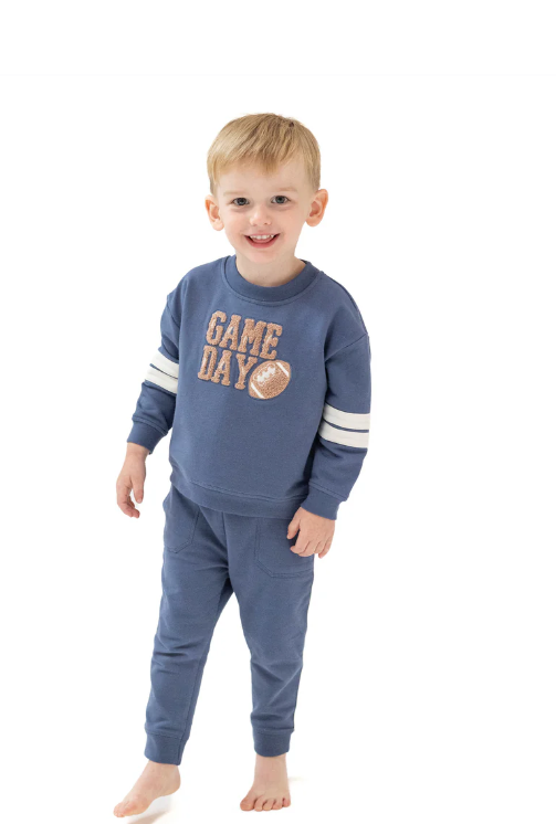 Get ready to cheer in style and comfort! Our Drop Sleeve Sweatshirt features classic varsity stripes and a festive Game Day chenille applique with football detail. Made from soft French terry, it’s perfect for chilly days filled with fun, friends, and football fever.