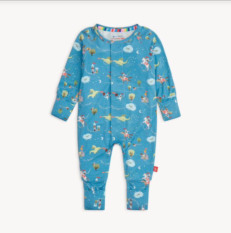- Magnetic closures make for quick, easy dressing and diaper changes.