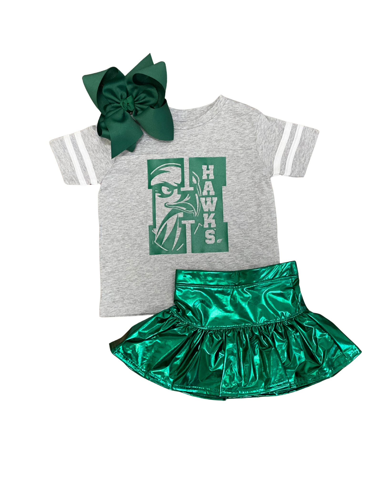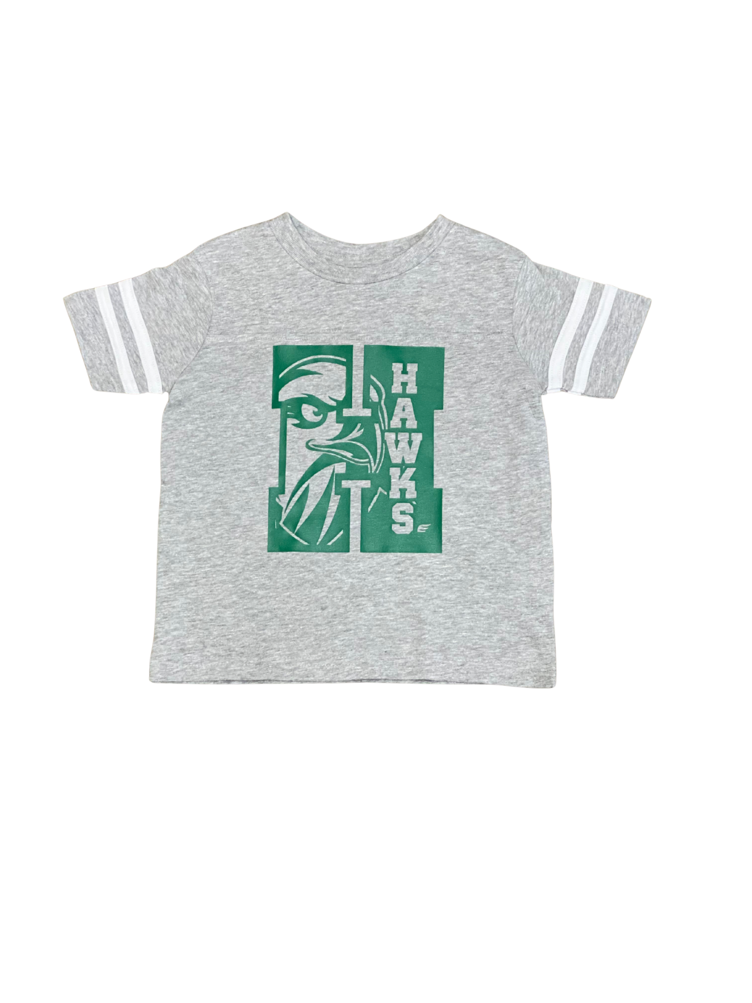 We love this design on a gray vintage varsity shirt. It will be perfect for your little hawk on Friday nights! Handmade in Beeville, TX.
