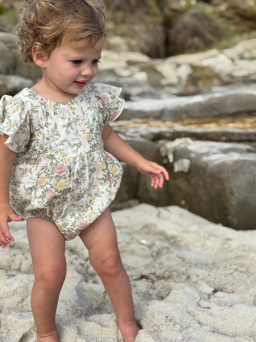 Adorable pink and green floral bubble romper designed for babies who love coordinating with their big sister and mom. This charming cottage floral print brings a sweet, garden-inspired aesthetic to playtime and special occasions. Soft, breathable fabric keeps little ones comfortable all day long. Perfect for creating matching family moments and capturing precious photos together.