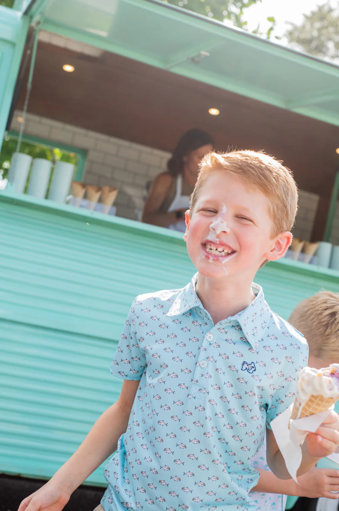 Moms call it the perfect golf polo for a reason—the Boys' Short Sleeve Pro Performance Polo - African Pompano Fish Print makes a splash with PRODOH performance details. With a 90% polyester 10% spandex UPF 50+ blend, this polo is perfect for little anglers and kids who love the water.