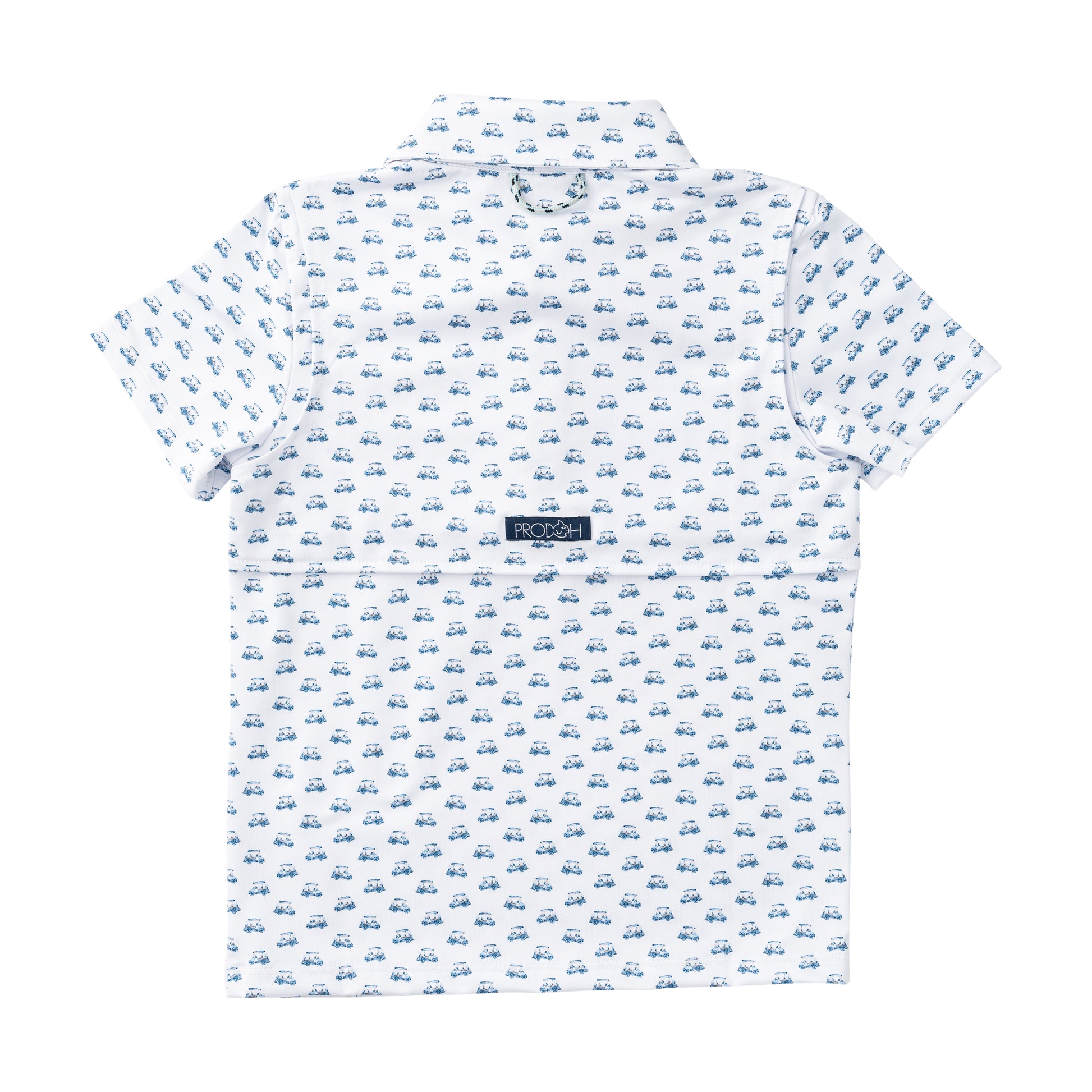 Moms call it the perfect golf polo for a reason—the Boys' Short Sleeve Pro Performance Polo - Golf Cart Print delivers playful style with PRODOH performance details. Made from a 90% polyester 10% spandex UPF 50+ blend, this quick-dry, moisture-wicking polo keeps kids cool, sun-safe, and ready to cruise from the golf course to the playground.