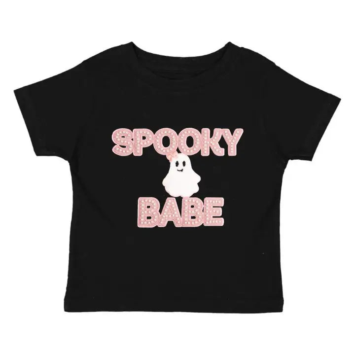 The Spooky Babe Patch Halloween Short Sleeve T-Shirt is a fun and festive t-shirt for kids celebrating Halloween!