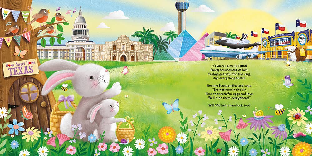 Search for Easter eggs with Little Bunny and hippity-hop around your hometown with this springtime read-aloud children's picture book!