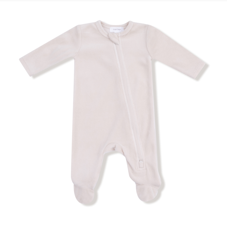 Velour Teddy Bear- 2 Way Zipper Footie // Oatmilk